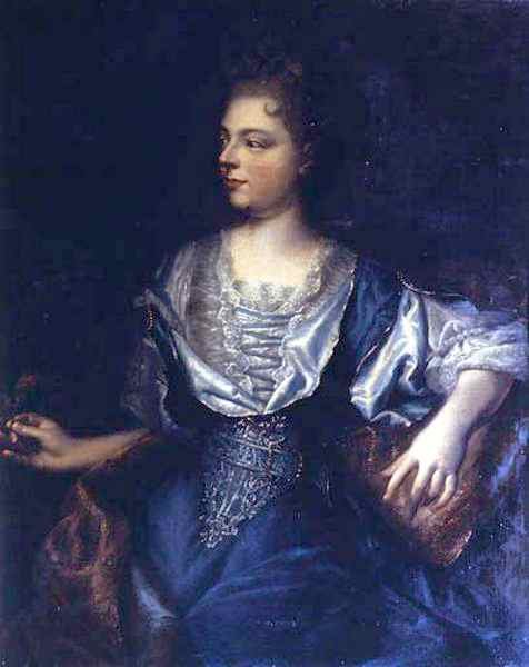 - 2. Huile sur toile d'après Rigaud (uniquement le portrait de Marie-Anne des Essarts), H. 100 ; L. 78 cm. Mennetou-sur-Cher, collection particulière. Une inscription sur la traverse au dos indique une identité fautive « duchesse de Mautausier ».