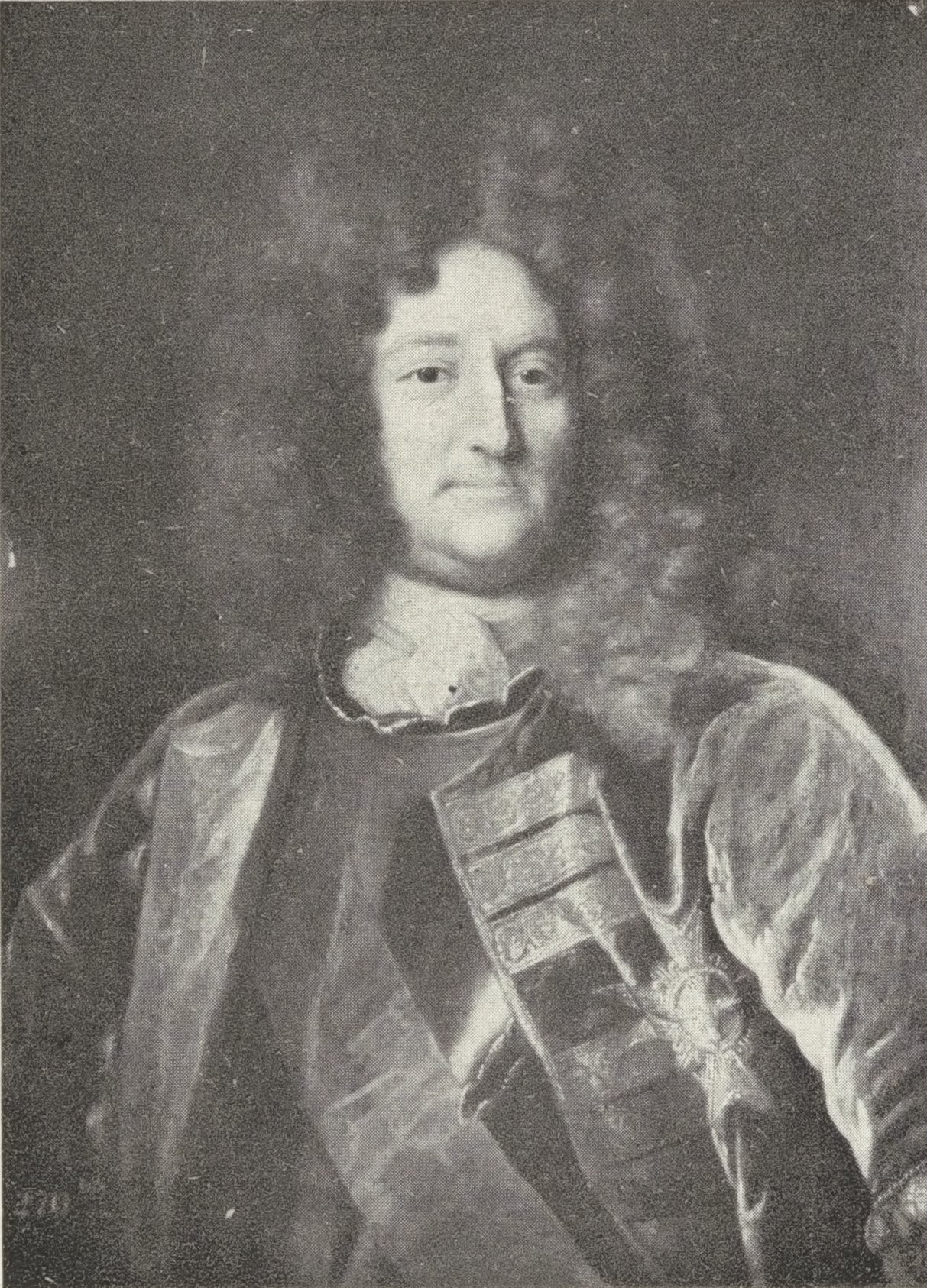 - 7d. Gravé par Bernard Picart (1709). Petit ovale en contrepartie de l’estampe d’Edelinck, dans un décor éllégorique à theme militaire. Sous le trait carré, à gauche : « B. Picart Inv. Et Efficgiem sculpt. 1709 ».