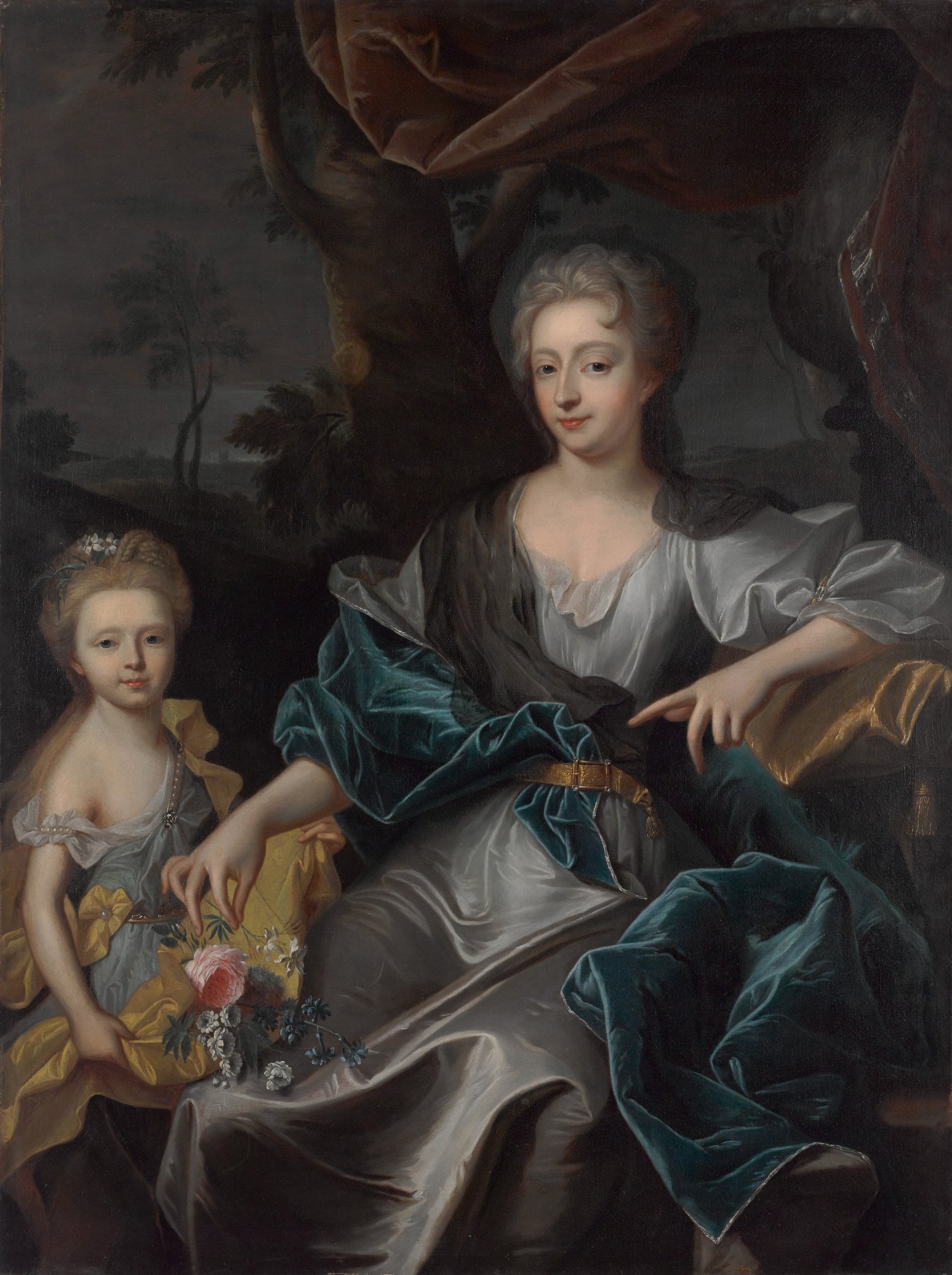 On a longtemps cru que le dessin de la vente Piasa de 2003 pouvait être une évocation du quadruple portrait de la famille Hennequin, représentant Madeleine Thérèse Euphrasie de Marillac et trois de ses enfants, sans doute Michel-André (1683-1755), Augustin-Vincent (1684-1749), Anne-Madeleine (1686-1708) et Thérèse (1690-1746). L'existence de la copie peinte conservée à Varsovie où l'on ne voit qu'une mère et sa fille, tendrait à infirmer cette hypothèse. À moins que cette version ne soit qu'un exemple tronqué de la composition d'origine, ici adaptée pour la comtesse Bielinska. La modèle est assez proche dans sa pose du portrait de Suzanne de Bourbers cueillant des fleurs [P.99].